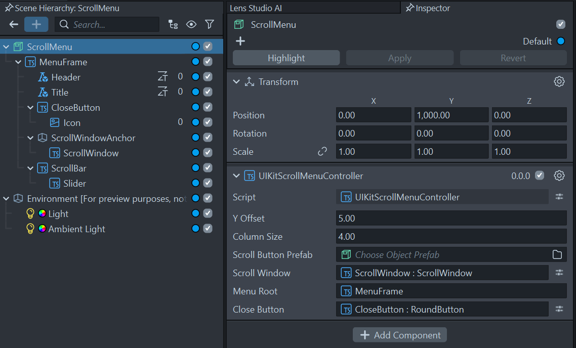 The ScrollMenu prefab