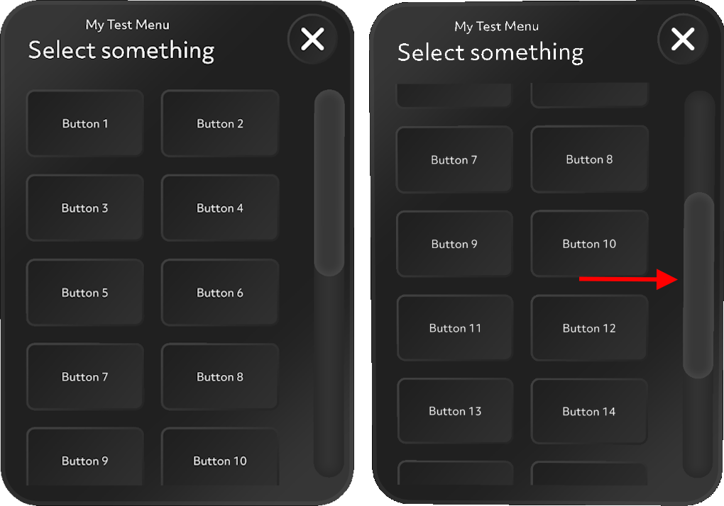 onButtonPressedevent that is triggered when the button is pressed, and returns theBaseScrollButtonDatathat was used to create this button in the first place. - It also exposes an event